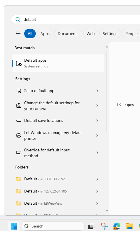 1) Select the Windows icon in the lower left of the screen and search "Default apps".