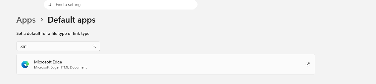 2) Search ".xml" in the search bar to be shown the current program responsible for opening XML files.