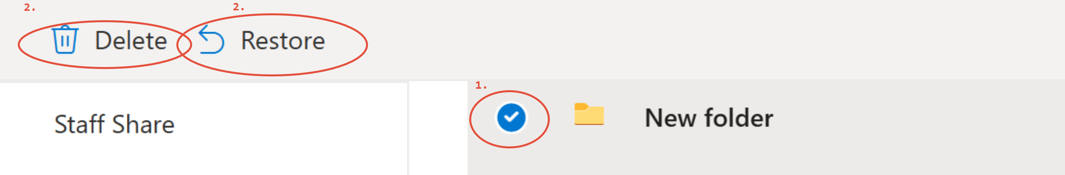 Once you follow the Step 1. on the screenshot you can chose weather you want to delete or restore content, to restore content you have a 93 day retention period meaning 93 days until they are gone from the recycle bin.