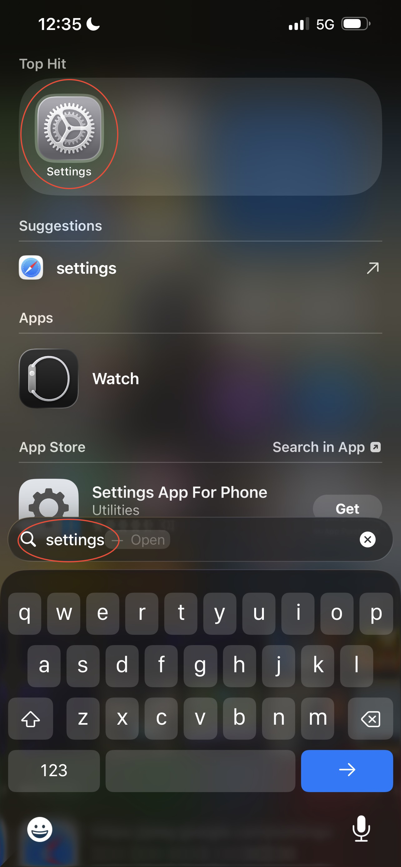 - In the search bar search settings