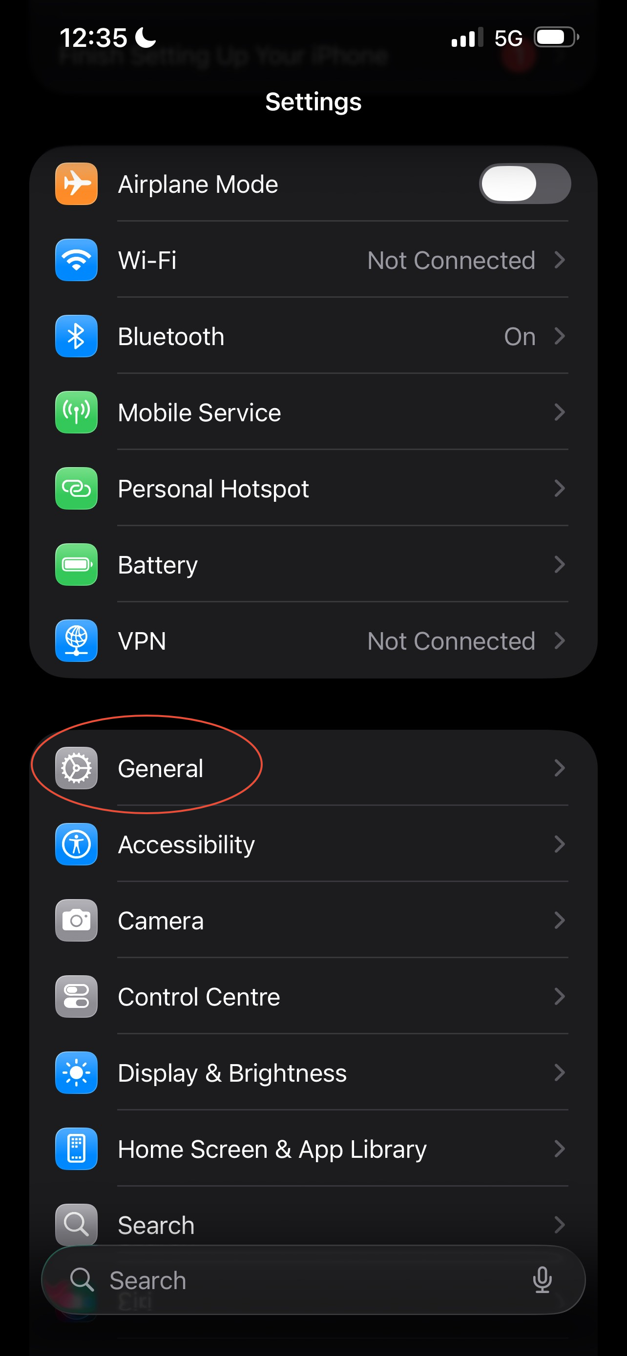 Once you open settings you will see a range of different options to elect from and here is where you will find General.