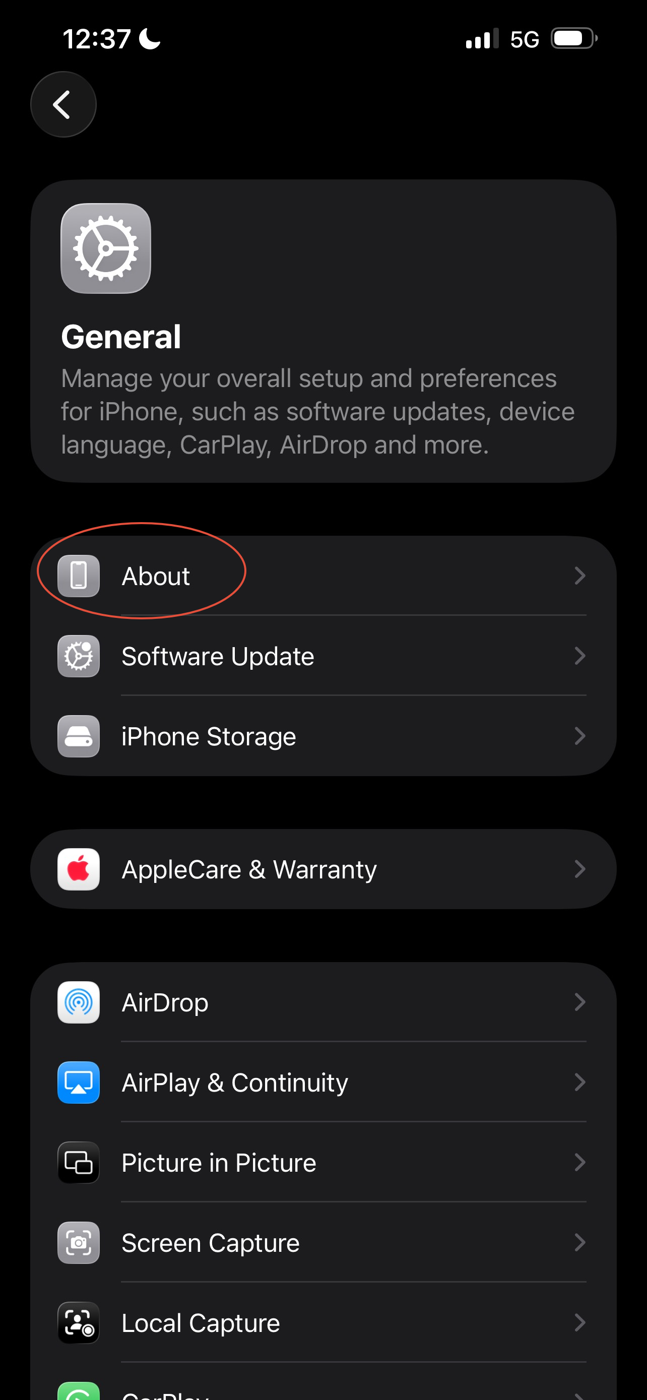 - Select "About"