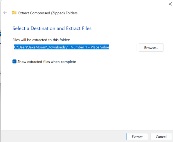 3) Select where to save your file your extracted files and select "Extract".